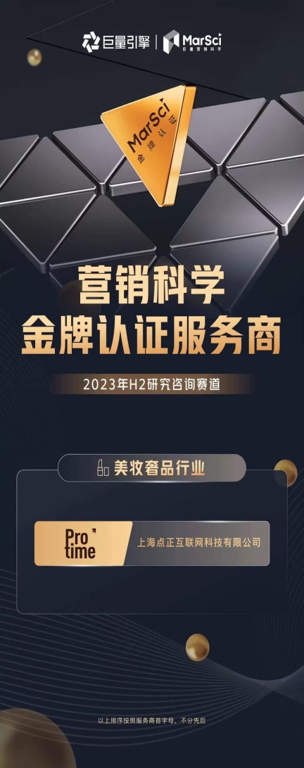 值得强调的是,这是巨量引擎营销科学首次遴选研究咨询赛道金牌服务商,点正科技能够一击即中,摘得首批金牌服务商荣誉,是因为点正科技不仅用营销数据专业高效地解决客户当下的问题。