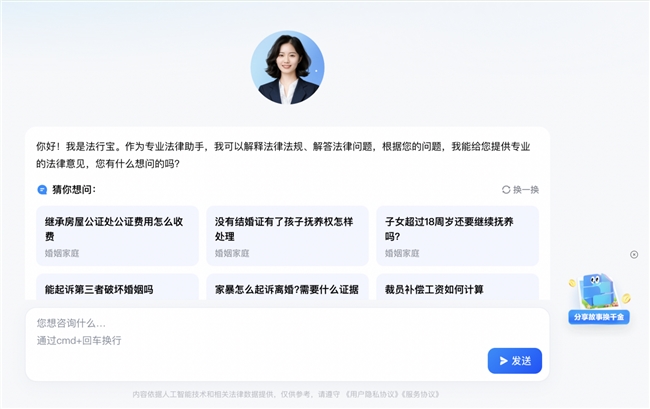 在为用户提供免费法律咨询服务之外,法行宝还能做到7×24小时实时响应,让用户能够在线上全天候享受高质量、零距离的法律咨询服务,避免线下奔波求助无门、经济实力不足以支付各类咨询费等种种窘况的发生。法行宝就像一个随时待命的免费AI律师,无论用户身在何处,只需一部手机或电脑,就能随时获得专业的法律支持,这将让法律服务变得更加普及和可访问。