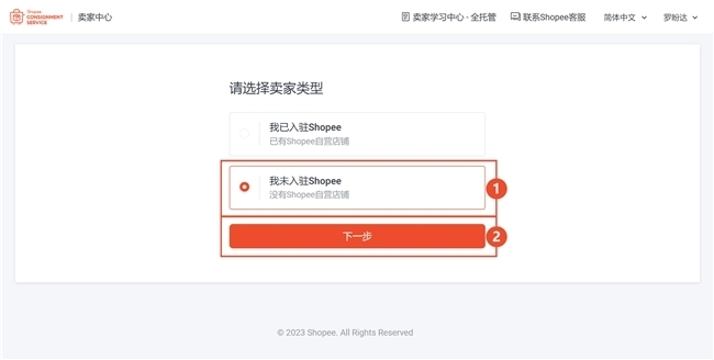 2、注册Shopee全托管账号: