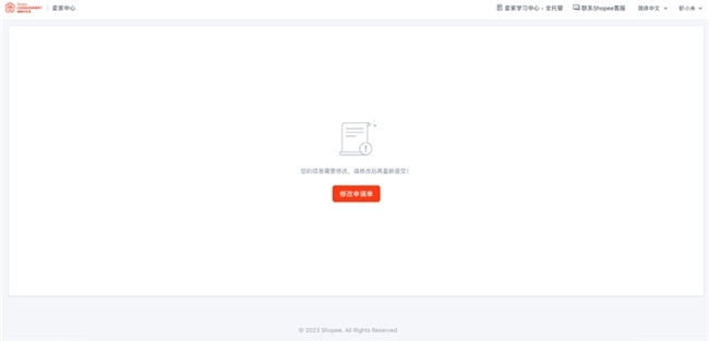 您登录【Shopee全托管卖家中心】,页面将会显示【您的信息需要修改,请修改后重新提交】的提示语,届时您点击【修改申请单】,即可查看修改原因,并修改申请信息,重新提交入驻资料,平台会重新审核。