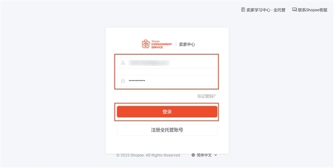 (图示:Shopee全托管卖家中心-账号登录界面)