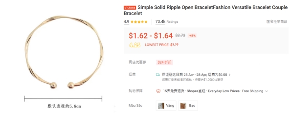 而潜力新品上架后,质美价优的配饰商品叠加Shopee全托管新品流量加持,让销量攀升的速度远超预期。据了解,此前有一款纯色波纹开口手链上新Shopee全托管店铺不到3个月,日销量迅速突破5,000件;另一款防过敏无孔耳钉,依靠突出的卖点和轻量化的产品设计,上架3个月后日均销量超1,000件,半年后累计销量达到数十万件。