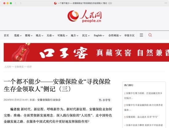 近日,中国保险行业协会发布了《关于“中国保险业2024年度好新闻”征集发布情况的通报》。幸福人寿选送的新闻作品《一个都不能少——安徽保险业“寻找保险生存金领取人”侧记(三)》,成功入选优秀作品。