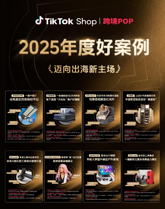 2025渐近尾声,TikTok Shop跨境POP商家在TikTok Shop平台上,在好产品、好内容、好营销和好服务的加持下,稳步迈向世界舞台。每一次用户好评、每一场品牌自播、每一次本土化营销活动,都是这条出海之路上的坚实印记。
