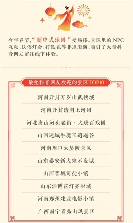 带NPC互动、民俗灯会、打铁花表演的新中式景区,直接霸榜春节最受欢迎景区TOP10。